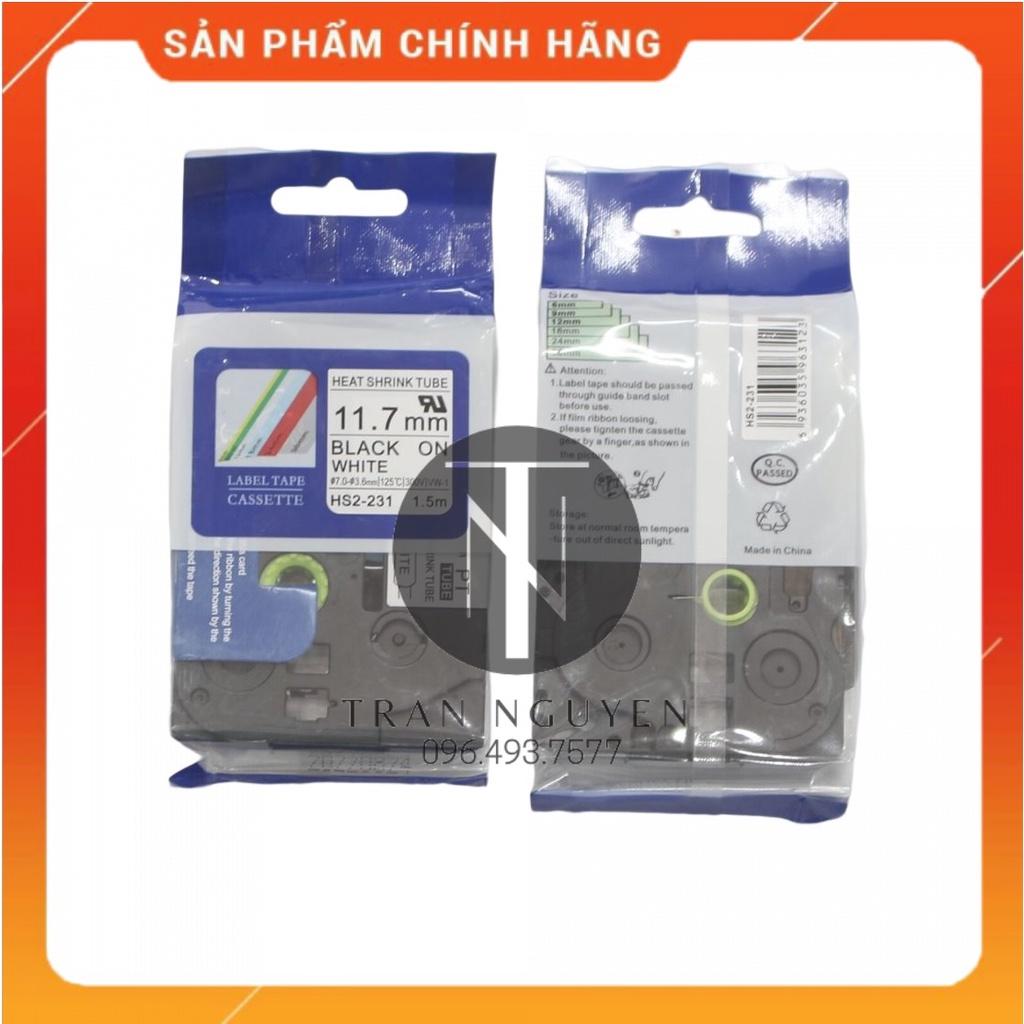 Loại sản phẩm: Ống co nhiệt Brother HS2-231 • Mã SP: HS2-231. • Màu sắc: Chữ đen nền trắng. • Kích thước: 11.7mm (rộng)* 1.5M (dài) - dùng cho dây lõi : Ø3.6mm đến Ø