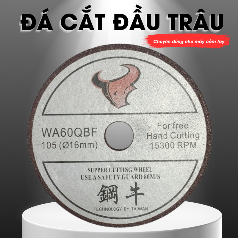 THÔNG TIN SẢN PHẨM: ️ Mã sản phẩm: DTBA1051 ️ Chất liệu : Hạt mài + Chất kết dính tổng hợp ️ Đường kính ngoài : 105 mm ️ Đường kính lỗ cốt : 16 mm ️ Độ dày : 1 mm ️ Số lượng: 5 viên ️ Thương hiệu : ĐẦU TRÂU ️ Sản xuất : Việt Nam Đá cắt Đầu Trâu là sản phẩm cao cấp trên thị trường với các thương hiệu đá cắt hiện nay, sản phẩm được tin dùng ở đa phần là khách hàng cá nhân, cơ sở sản xuất nhỏ lẻ bởi thiết kế siêu mỏng nhưng lực cắt rất bén, bề mặt cắt sản phẩm đẹp tạo nên tính thẩm mĩ hơn cho các nguyên liệu và khâu chế tác sản phẩm – Thiết kế sản phẩm đá cắt Đầu Trâu vừa đơn giản vừa tiện lợi, giúp khách hàng dễ dàng đọc thông tin trên nhãn hiệu: ký hiệu bảo hộ,.... ƯU ĐIỂM SẢN PHẨM:
