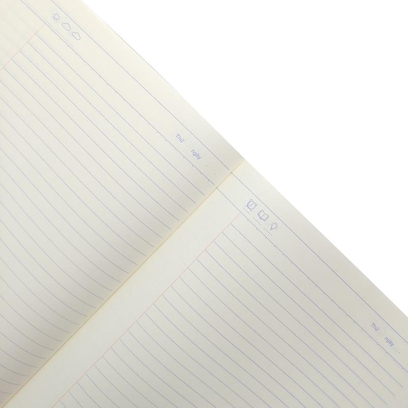 Ruột vở kẻ ngang, dòng kẻ đậm nét, rõ ràng giúp việc ghi chép dễ dàng.