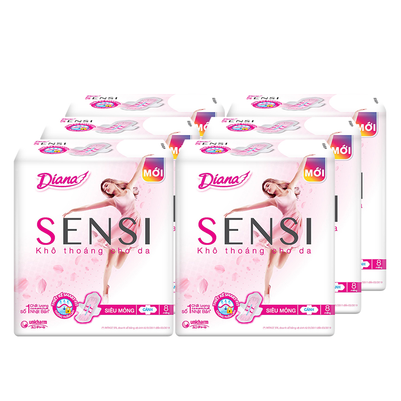 - Combo 6 Băng Vệ Sinh Diana Sensi Siêu Mỏng Cánh (Gói 8 Miếng) là dòng băng vệ sinh dùng hàng ngày của thương hiệu Diana giúp bảo vệ tối ưu cho phái đẹp, ngăn