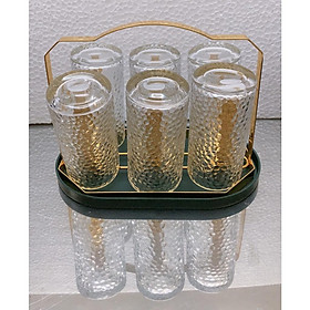 Bộ 6 cốc uống nước Kèm Ca kính 2 lít, Khay úp cốc Việt Nhật chịu nhiệt tốt, Cốc tổ ong uống bia, trà