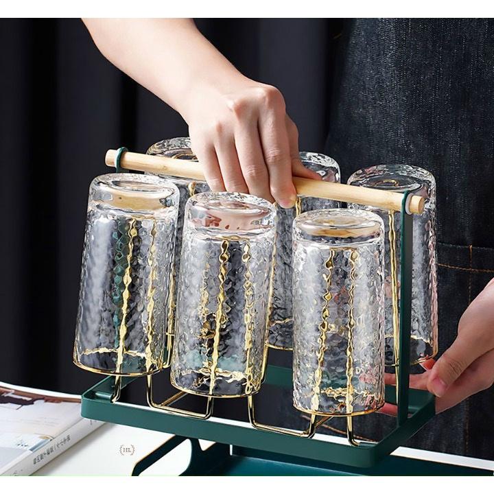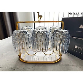 Combo Bộ 6 cốc thủy tinh cao cấp kèm giá úp tròn có khay hứng Combo gồm: 1 bình 6 cốc cốc 1 giá úp hươu 1 khay vương miện