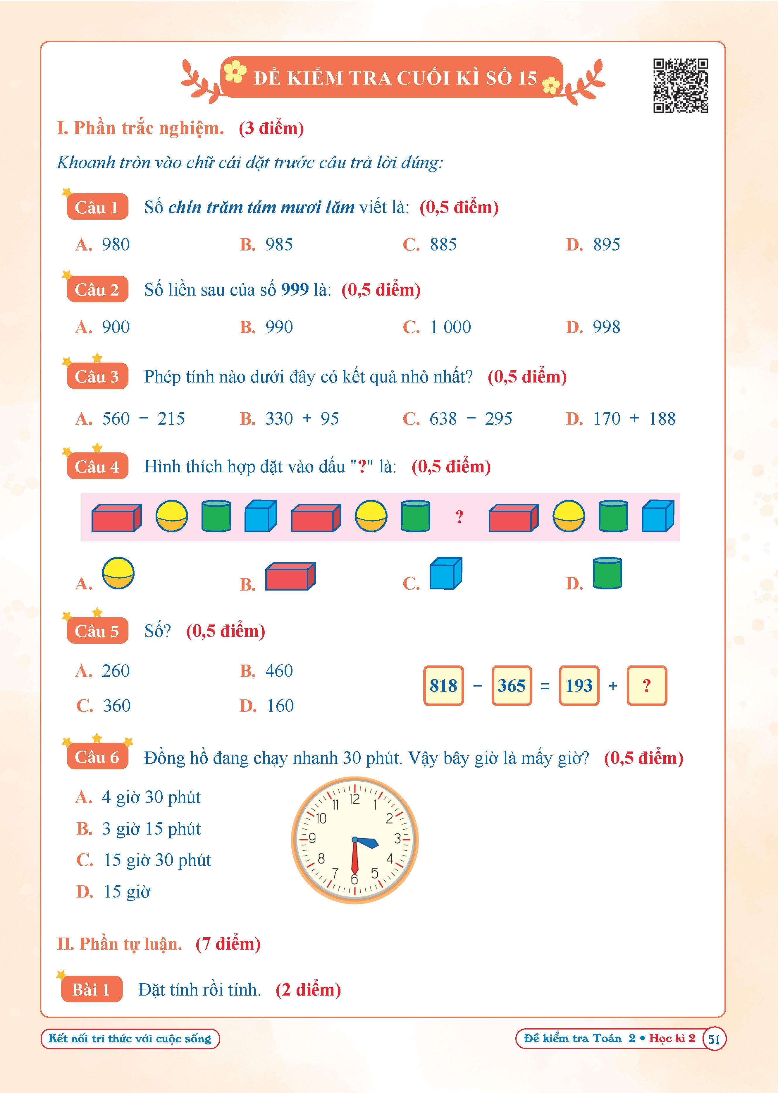 Đề số 1 | Đề kiểm tra giữa học kì 1 | Toán lớp 2 | Kết Nối | Thầy Nguyễn Văn Quyền