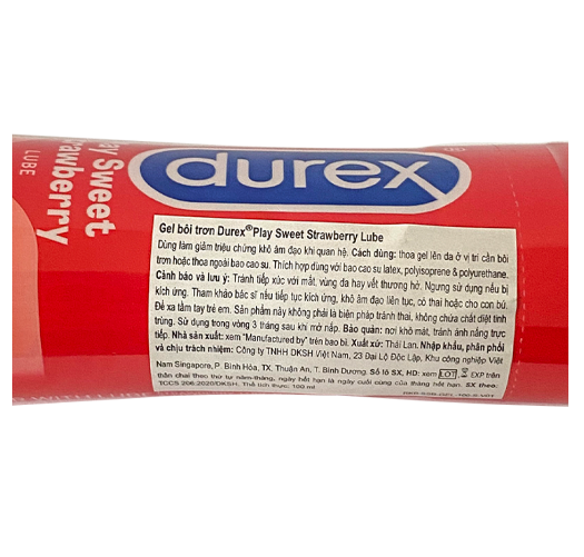 - Xuất xứ: Thái Lan. Hướng dẫn sử dụng Gel bôi trơn Durex Play Strawberry hương dâu:
