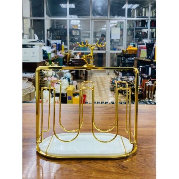 Giá Đỡ Cốc Kim Loại Mạ Vàng Cao Cấp Tạo Hình Đầu Hươu Kèm Khay Hứng Nước Tiện Lợi Dễ Dàng Sử Dụng