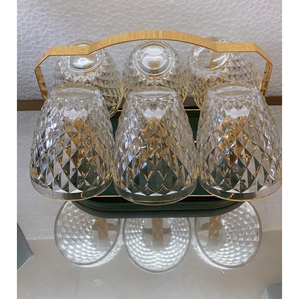✨Combo giá úp cốc mạ vàng có khay hứng nước kèm 6 cốc loe vân hạt kim cương