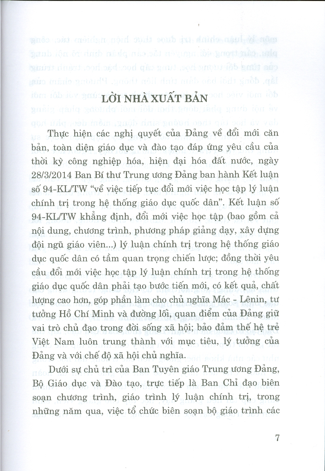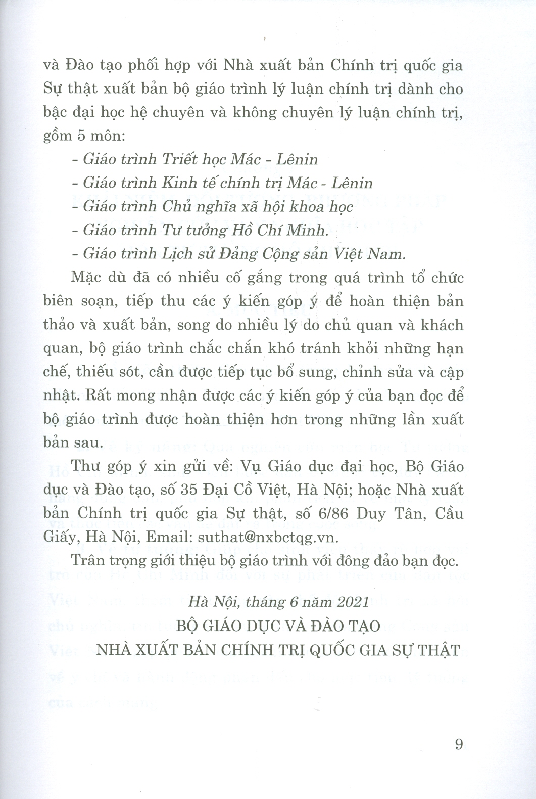 Bộ giáo trình lý luận chính trị gồm 5 cuốn dành cho bậc đại học hệ không chuyên lý luận chính trị. Bộ sách là tài liệu giảng dạy, học tập cho giảng viên, sinh