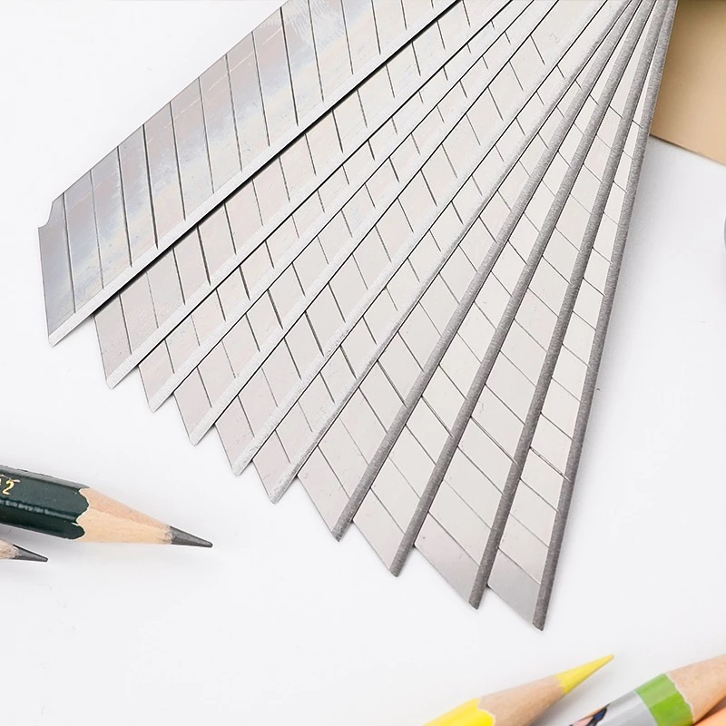 Bộ 10 Lưỡi Dao Rọc Giấy Sản phẩm được thiết kế thuận tiện khi lắp vào cán dao và hoạt động trơn tru.Lưỡi dao làm bằng thép carbon bền, sắc bén, bề mặt sáng bóng,