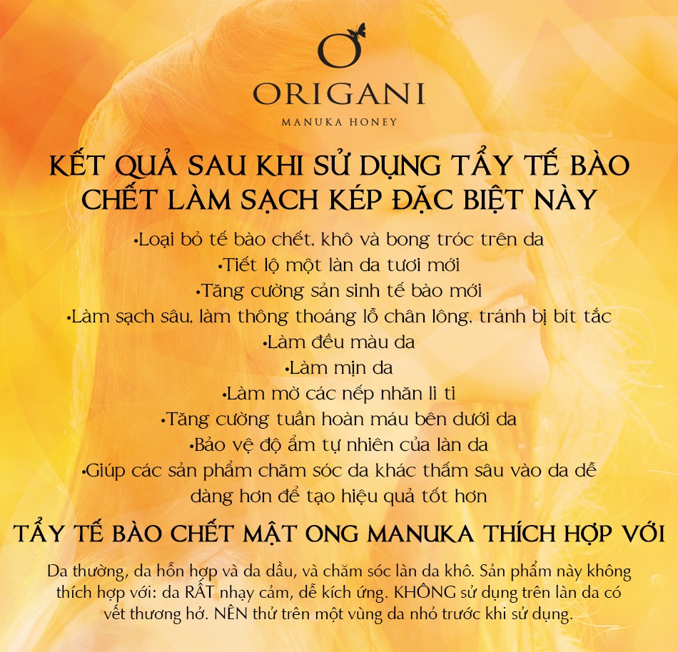 Mật ong manuka tẩy da chết ORIGANI, liên hệ tư vấn: 0834545453 gặp Huỳnh