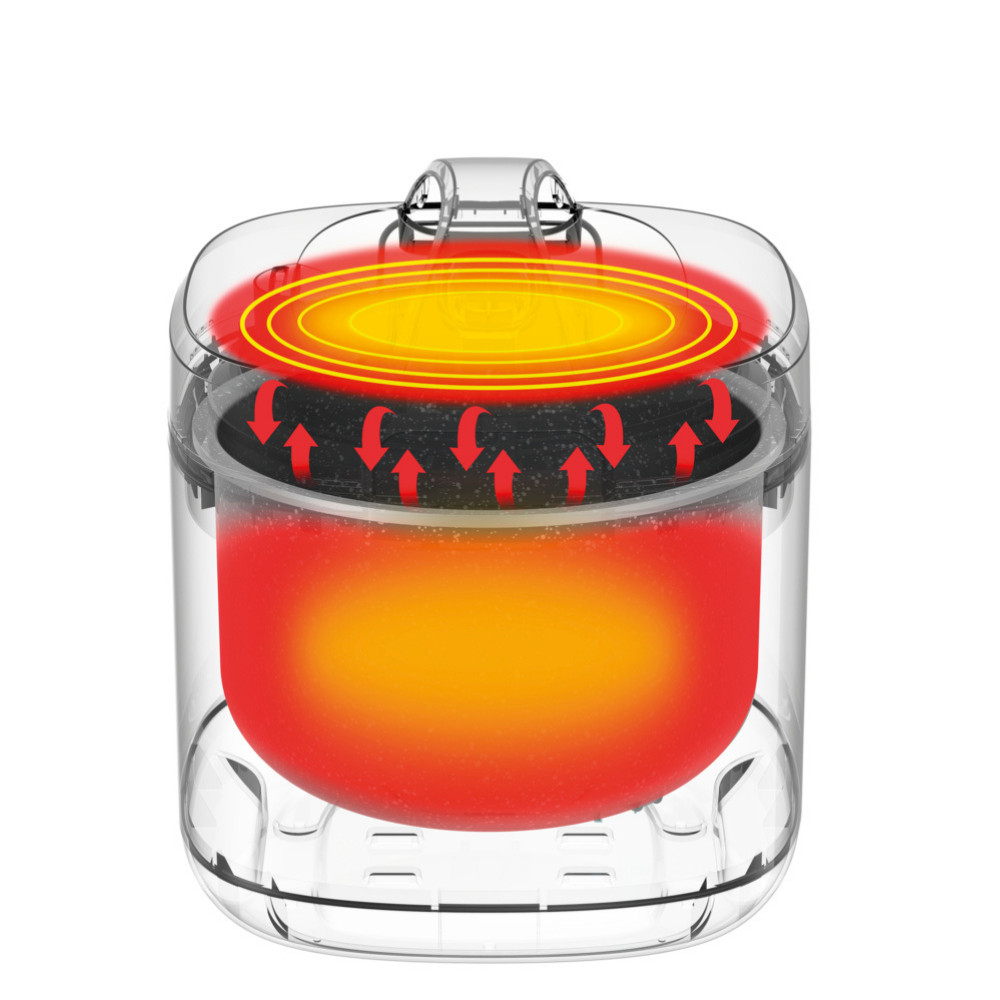 • Luồng nhiệt luân chuyển từ nắp xuống và từ đáy nồi lên, giúp cơm chín đều và ngon hơn, không bị phân lớp như nồi thông thường, giúp bữa cơm gia đình hằng ngày thêm ngon vị.
