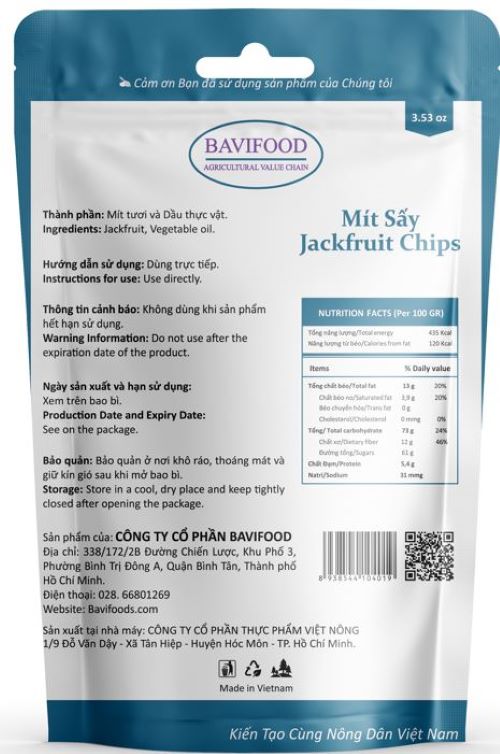 - Khi sử dụng chưa hết cần giữ kín bao bì và bảo quản trong ngăn mát tủ lạnh. Hạn sử dụng: 12 tháng kể từ ngày sản xuất. Nơi sản xuất: Nhà máy Hóc Môn - Hồ Chí Minh - Việt Nam, Quy trình chế biến: Nông sản được chọn lọc từ các vùng nguyên liệu tại Việt nam, làm sạch, sơ chế, cấp đông nhanh, sấy trong môi trường chân không, tại nhiệt độ thấp và được gói trong phòng sạch - tiêu chuẩn vi sinh với qui trình định lượng và đóng gói tự động với bao bì màng nhôm thực phẩm 3 lớp, tất cả được chế biến tại Nhà máy đạt chứng nhận ISO 22000 và HALAL với qui trình kiểm soát nghiêm ngặt HACCP.
