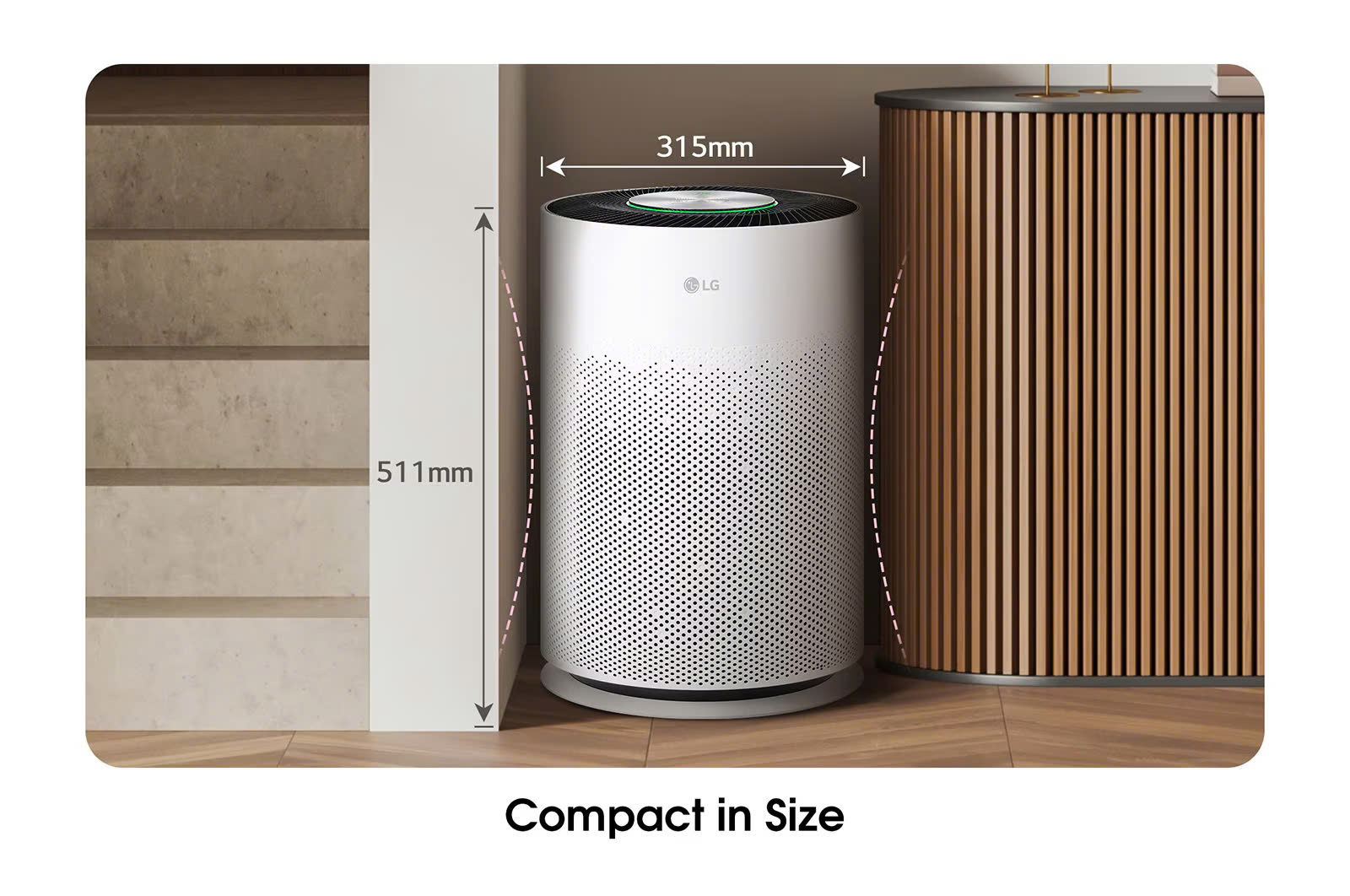 Thiết kế - Máy lọc không khí LG AS10GDBY0.ABAE thiết kế 2 tầng hiện đại, lọc sạch không khí hiệu quả với không gian 104m² kết hợp luồng khí 360 độ giúp làm sạch không khí khắp không gian phòng.