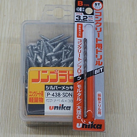 ✨Combo Vít bê tông 4mm đầu dù P438 & Mũi khoan bê tông 3.2mm đuôi kẹp Unika (Không cần tắc kê nhựa)