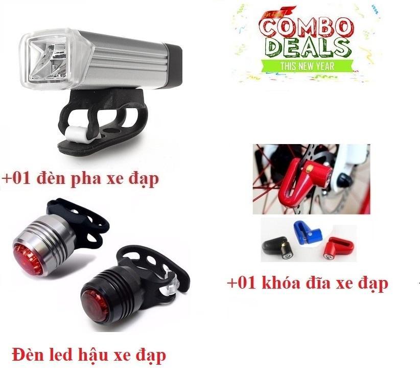 ✨Combo xe đạp : Khóa Chống Trộm Xe Đạp +Đèn pha siêu sáng+Đèn led hậu có móc cài cho xe đạp