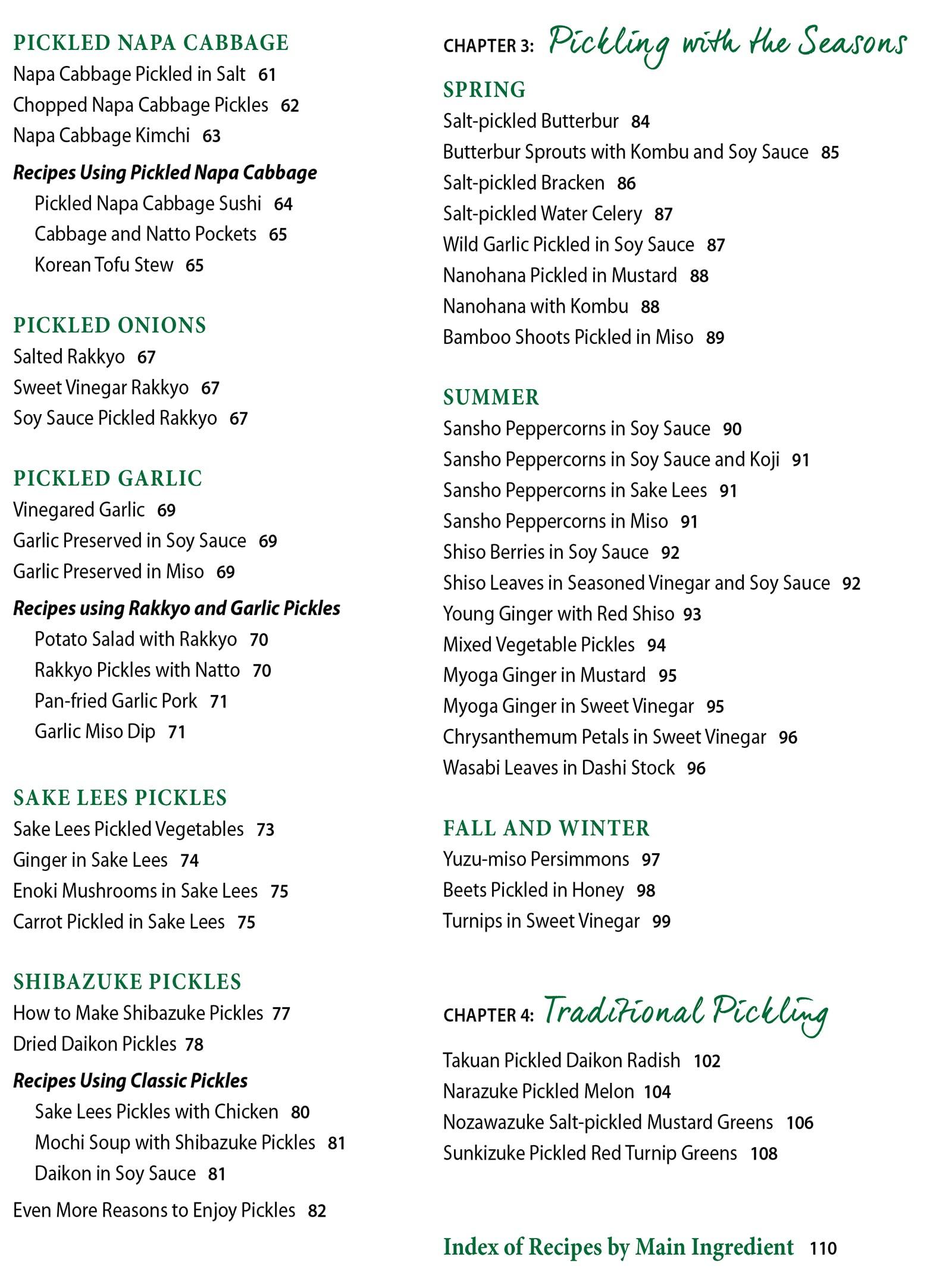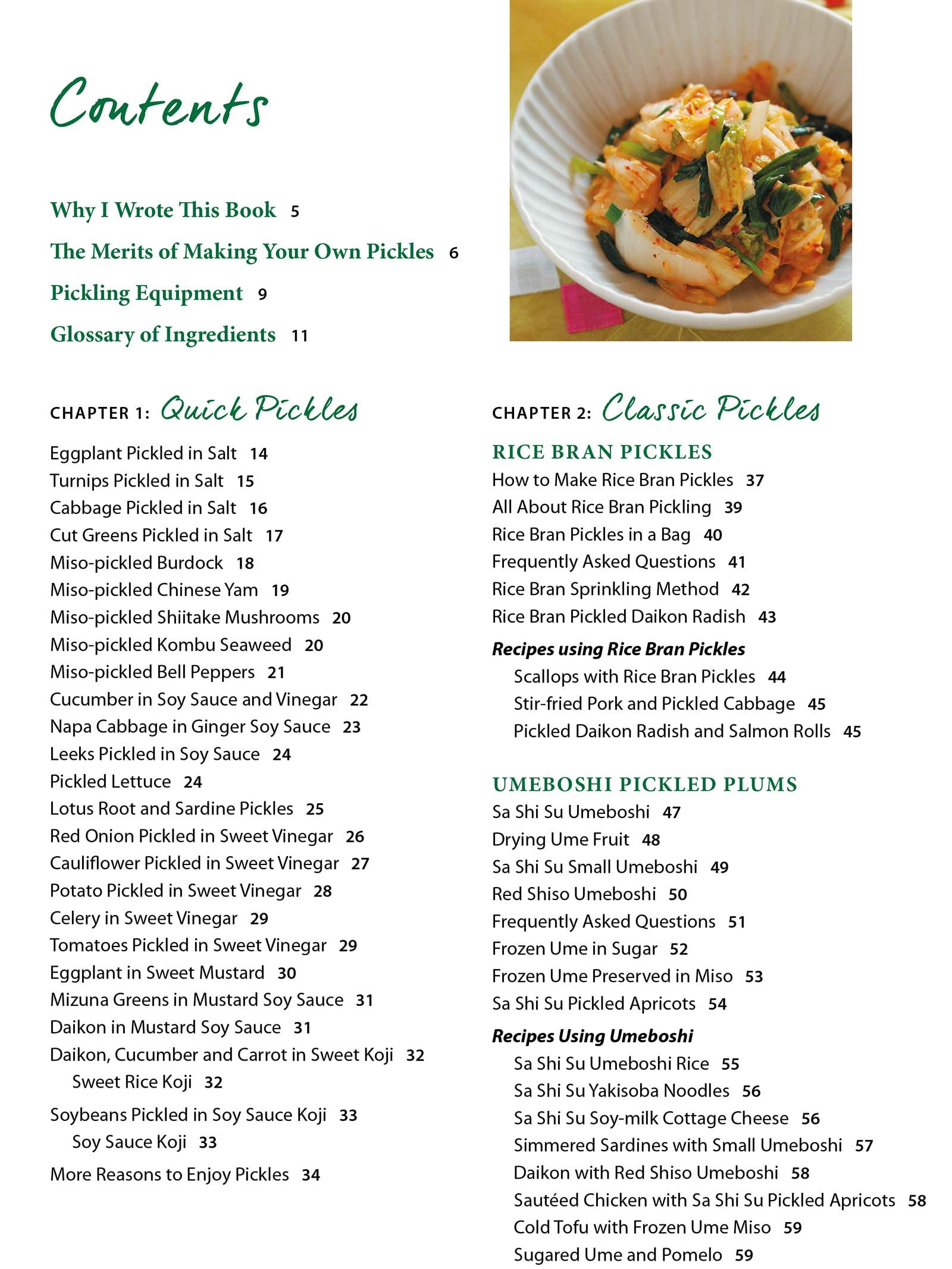 Author Takako Yokoyama provides 97 pickling recipes grouped into three chapters: