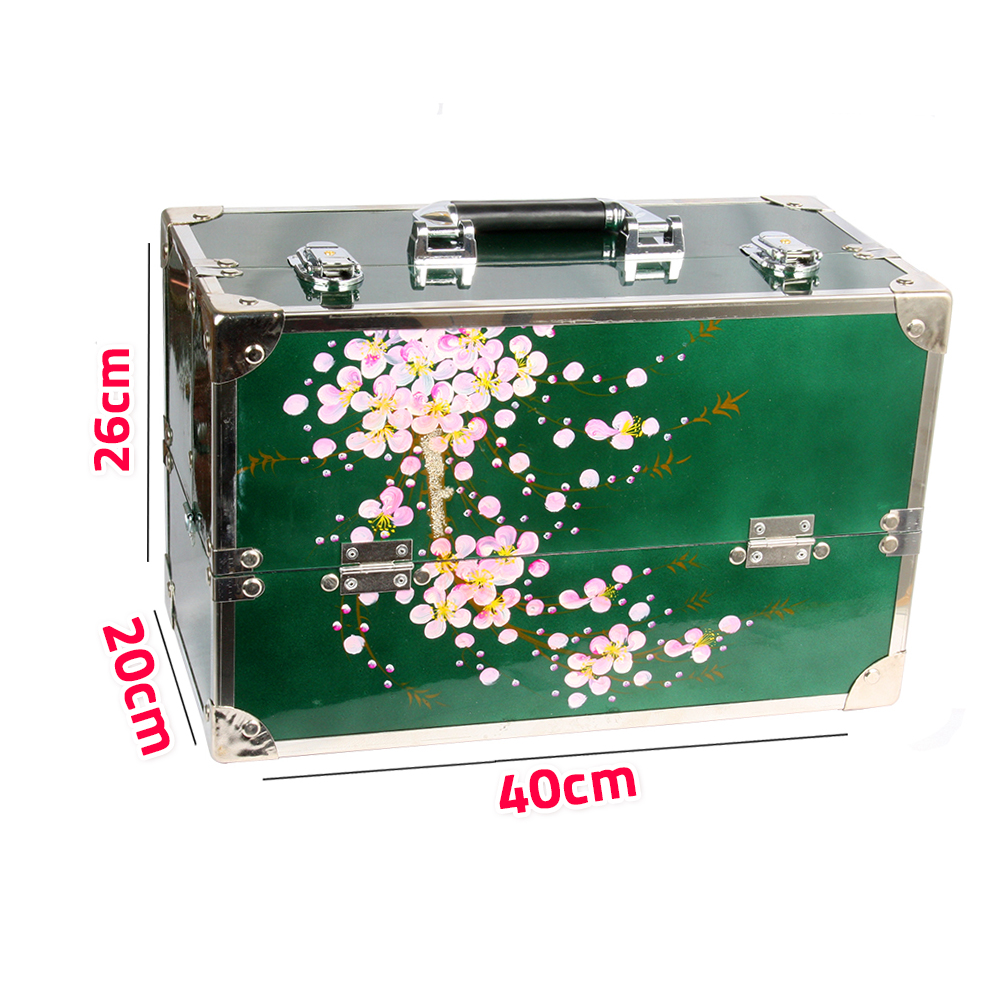 ✨Cốp sơn mài cao cấp Hana đựng mỹ phẩm, đồ phun xăm, nail, nối mi sơn mài dát vàng cẩn vỏ trứng, họa tiết vẽ tay cao cấp, viền khung nhôm chắc chắn, bọc góc inox size 40x20x26 cm