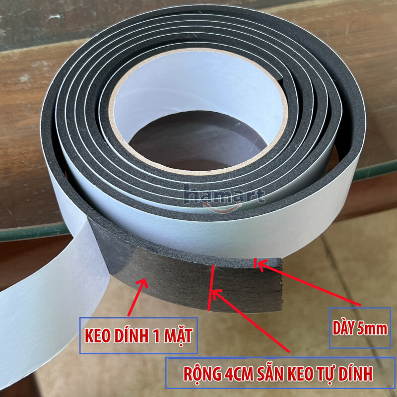 Mua tại TiktokCuộn xốp dán chân bàn ghế đa năng là giải pháp tiện ích giúp bảo vệ sàn nhà chống xước, giảm tiếng ồn và chống trượt hiệu quả. Sản phẩm có thiết kế dạng cuộn dài 2m, rộng 4cm, dày 5mm, có sẵn lớp keo dán một mặt chắc chắn, dễ dàng cắt dán theo nhu cầu. Phù hợp để sử dụng cho chân bàn, ghế, giường, tủ, cách âm cửa ra vào, bịt khe hở cửa sổ hoặc góc cạnh bàn nhằm chống xước, chống va đập.