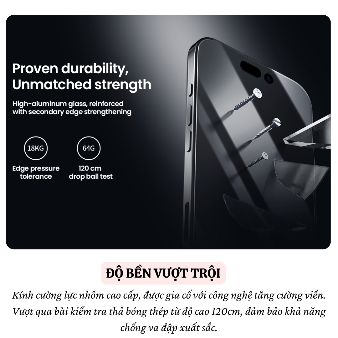- Công nghệ chống nhìn trộm: Với góc nhìn hẹp, kính cường lực này giúp bảo vệ màn hình của bạn khỏi ánh mắt tò mò từ người xung quanh, chỉ cho phép người trực