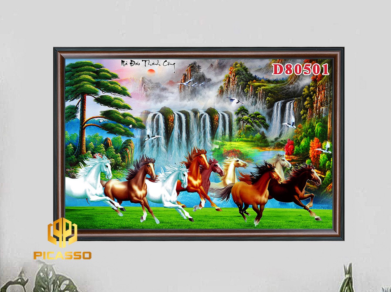 Tranh Kính 3D Mã Đáo Thành Công(Tranh Bát Mã) Đẹp. Tranh Kính Cường Lực Nhật Minh