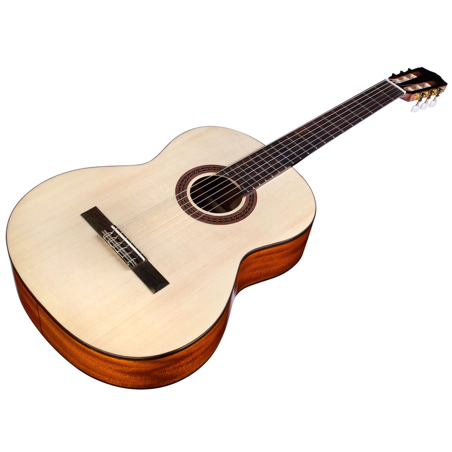 - Hoàn hảo như một cây đàn guitar dây nylon, cây đàn nhẹ này được chế tạo với một đầu đàn Engelmann chắc chắn và mặt sau bằng gỗ gụ để tạo ra một giai