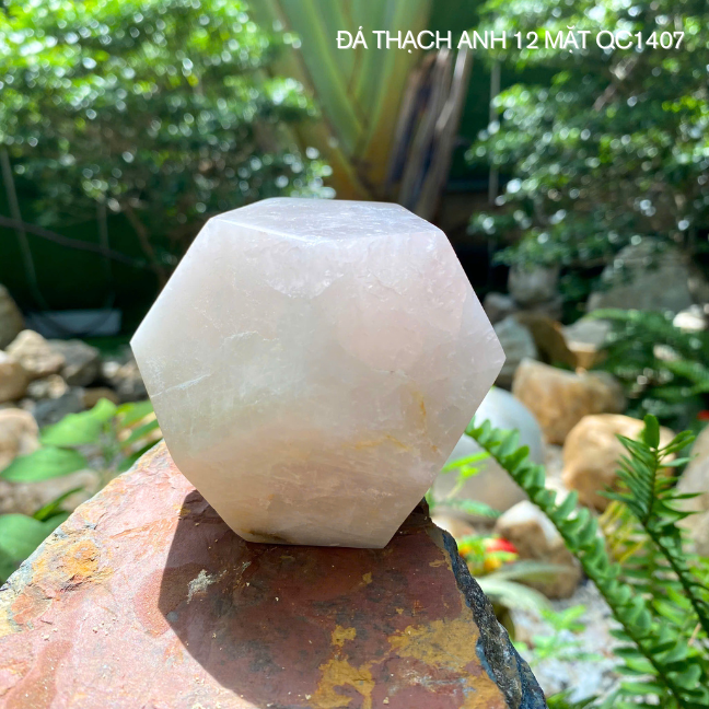 "Bỏ túi" năng lượng yêu thương và an lành với viên đá thạch anh hồng 12 mặt QC1409. Đường kính 8cm, nặng 520gr, chế tác tinh xảo. Biểu tượng của tình duyên, chữa lành và sự