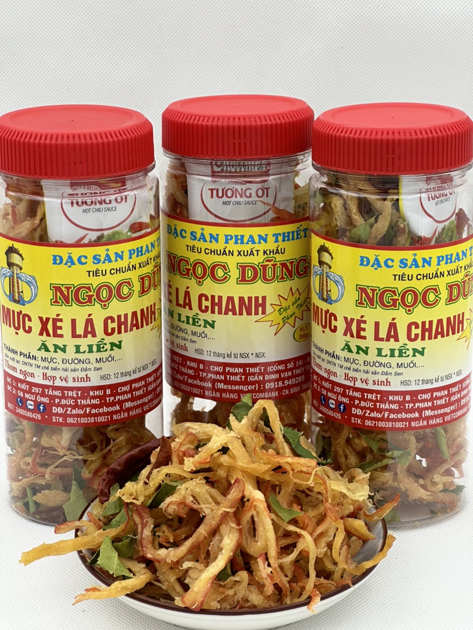 - Mực xé lá chanh đã chế biến ăn liền ngon ơi là ngon của shop Đặc Sản Biển Phan Thiết NGỌC DŨNG được bán trên các sàn thương mại điện tử; Chợ lớn Phan Thiết và các điểm dừng chân khi khách hàng đi du lịch Phan Thiết Mũi Né mua để ăn vật và mua làm quà biếu cho người thân, bạn bè, đồng nghiệ