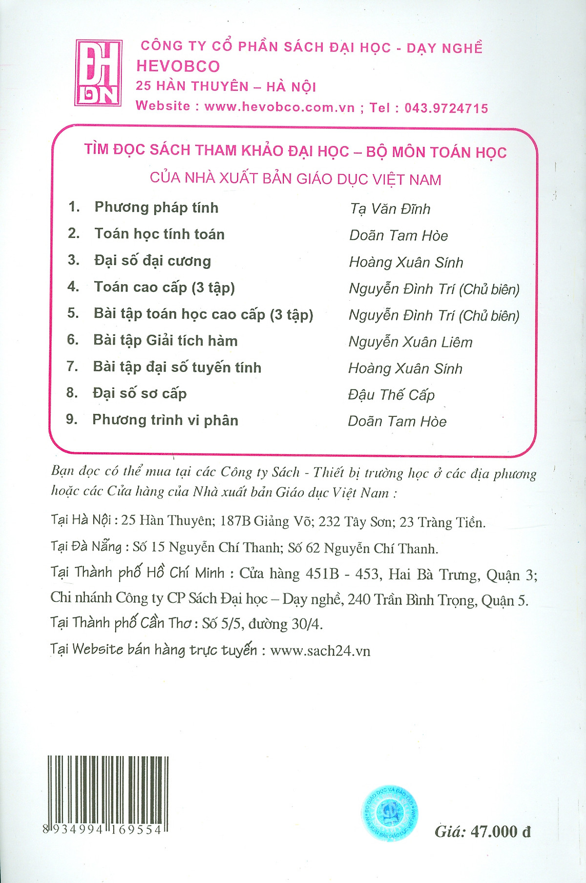 Tên sách: Bài tập Toán học cao cấp Tập hai - Giải tích Tác giả: . Nguyễn Đình Trí (Chủ biên) - . Trần Việt Dũng - . Trần Xuân Hiển - . Nguyễn Xuân