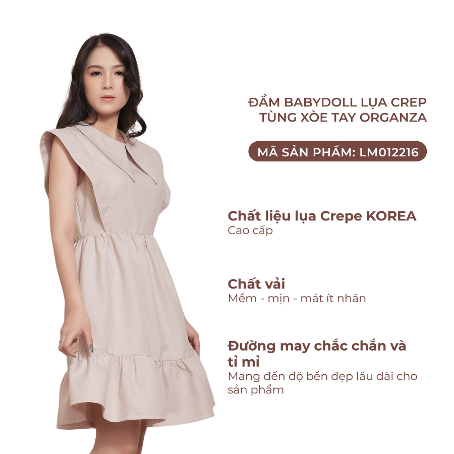 ✨Đầm Babydoll Lụa Crep Tùng Xòe Tay Organza Maxivic, La Mộc - LM012216