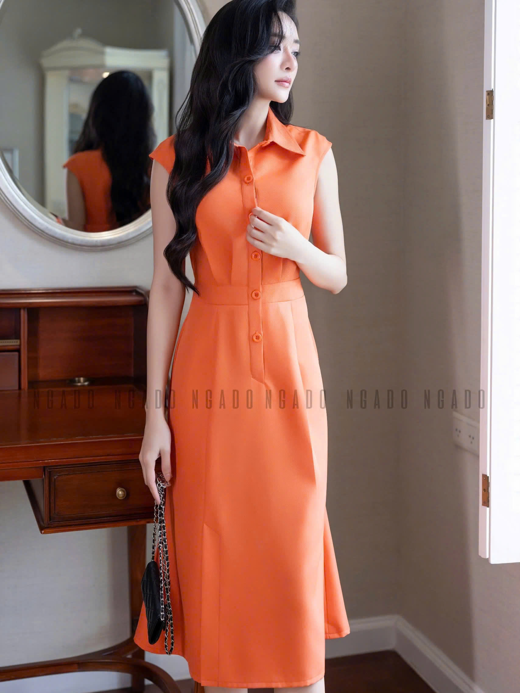 ✨Đầm cam eo xếp ly NGADO , đầm thiết kế , đầm công sở , dạo phố