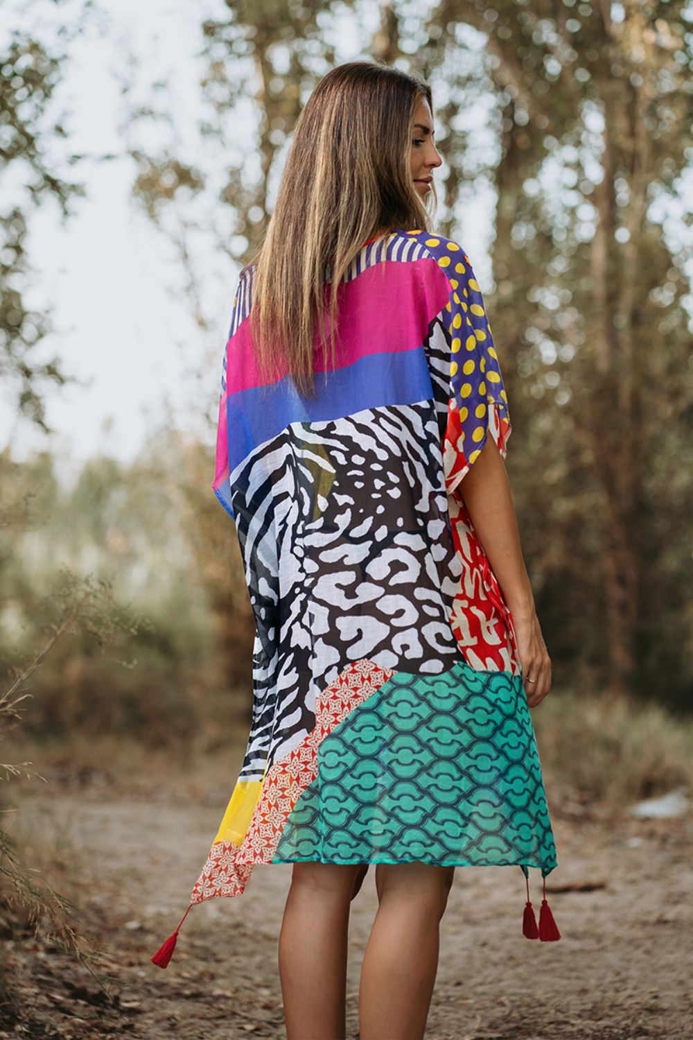 Đầm Boho Dài Tay Isla Bonita, chất lụa cao cấp, mềm mại, thun co giãn ở eo. Phom suông xòe rộng. Dài đầm 90cm (45x90) Phù hợp đi biển, dạo phố, công sở, hoặc dự