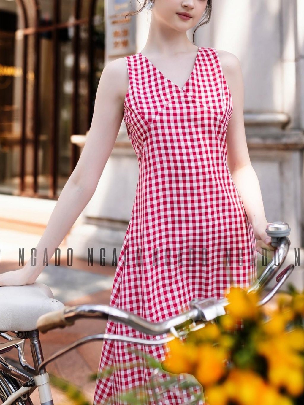 ✨Đầm caro đỏ cổ tim NGADO , đầm nữ , Đầm vintage , Đầm mùa hè , Đầm dạo phố , Đầm xinh , Đầm thiết kế