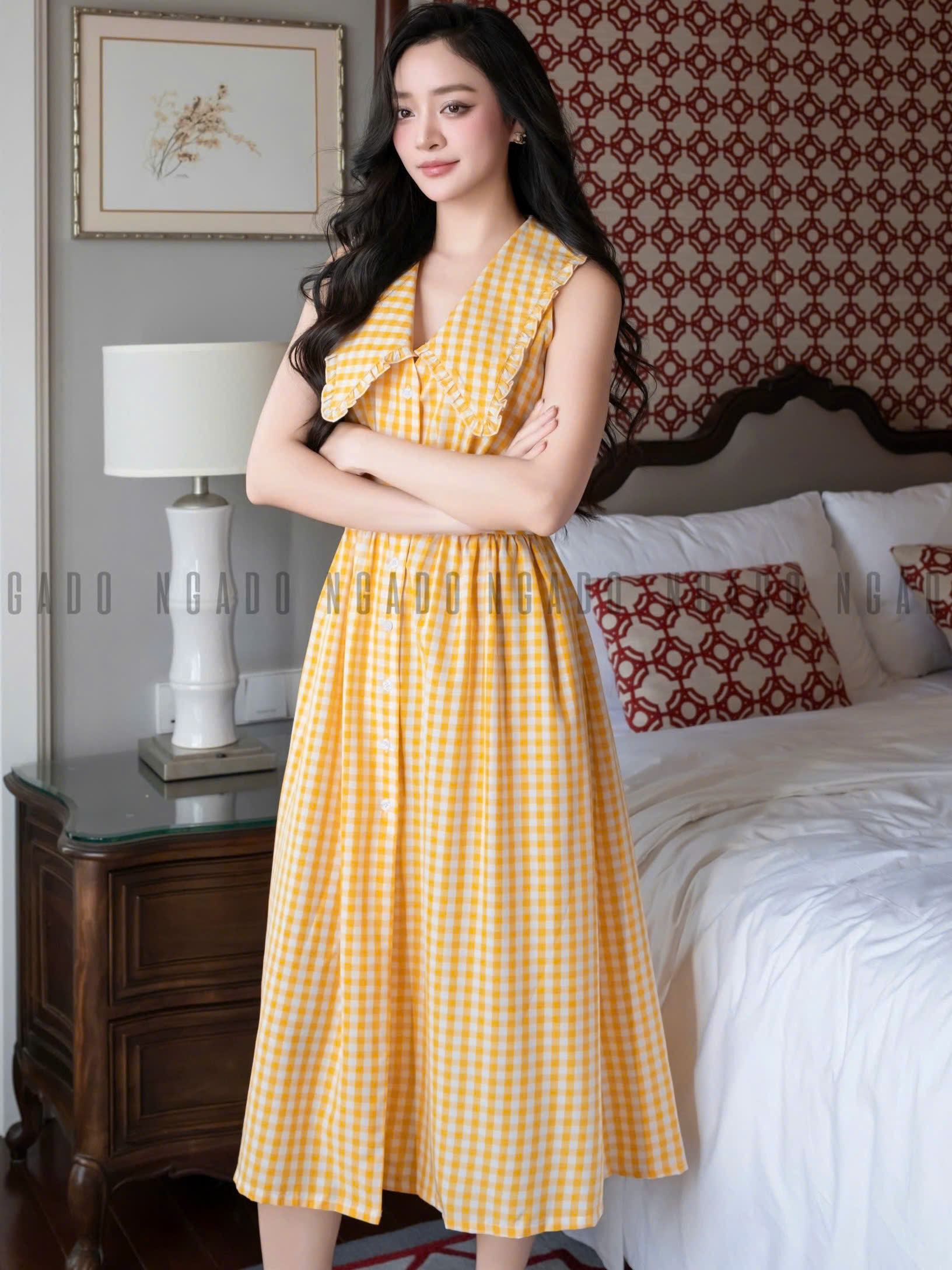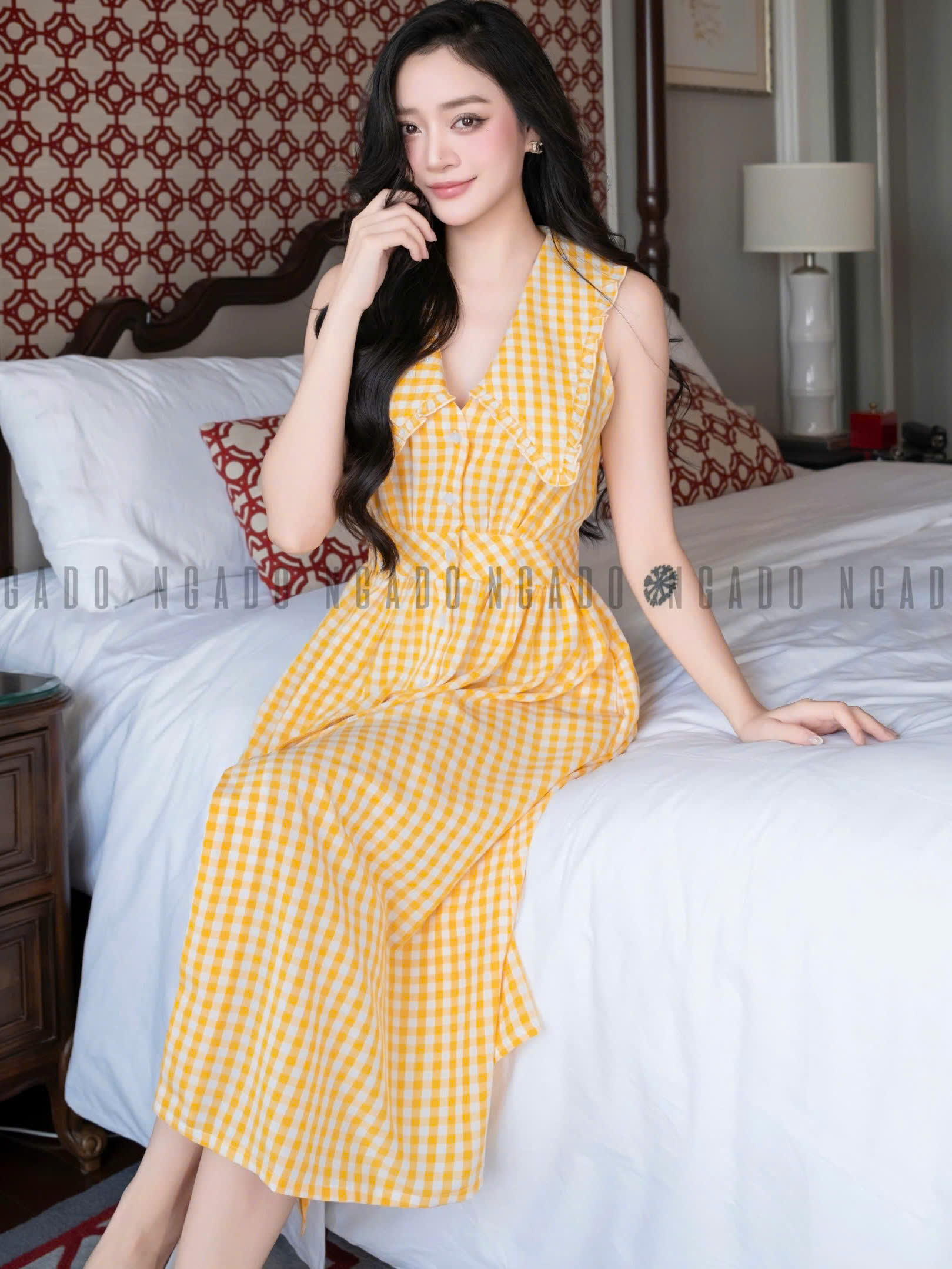 ✨Đầm caro vàng sát nách NGADO , đầm kẻ caro , đầm sơ mi