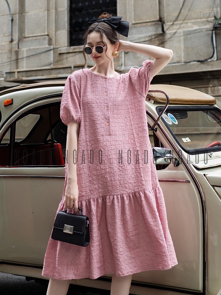 Đầm bầu phối bèo MM77 Hồng