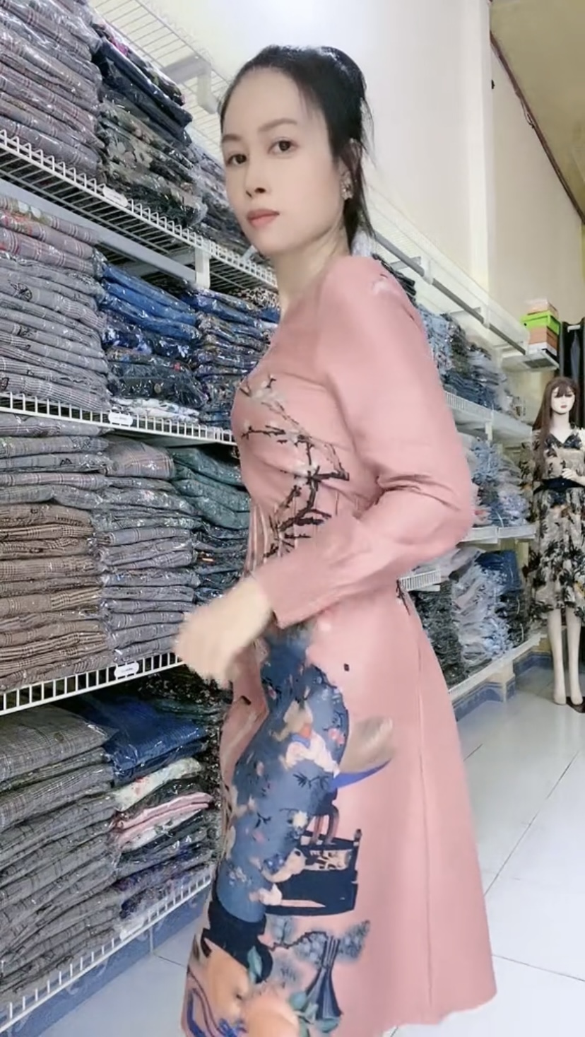 Chất liệu: vải voan tơ thêu hoạ tiết nổi sang hết biết, lớp trong là voan chiffon, lớp trong cùng là thun Kiểu dáng: là 1 chiếc đầm rất sang giả áo dài đẹp tuyệt