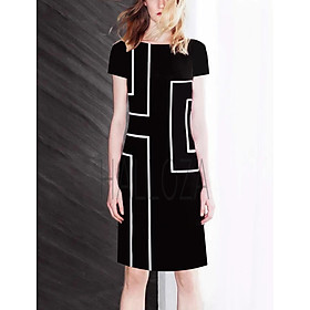 ღ THÔNG TIN SẢN PHẨM: Tên sản phẩm: Đầm trắng cổ tròn phối đen Màu sắc: trắng phối đen Chất liệu: chất bố Chi tiết sản phẩm: không lót, không túi.