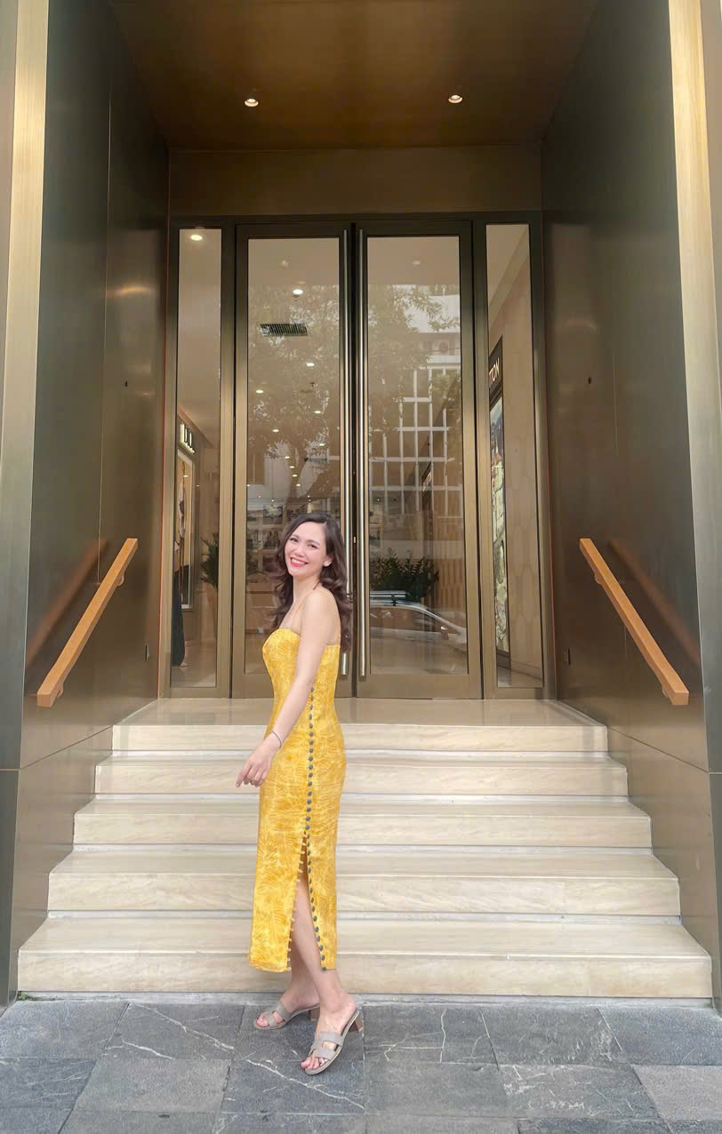 • Nghệ nhân cắt may: Thanh Thuỷ, Bích Hoà. Cắt may thủ công tinh tế tại Hity Atelier, Nha Trang, Việt Nam Trong khoảnh khắc giao mùa, khi những tia nắng mùa hạ trở nên vàng óng và rực rỡ nhất, có những thiết kế ra đời không chỉ để được chiêm ngưỡng, mà để trở thành một phần của ký ức. Kim Diệp chính là một tuyệt tác như vậy – một bản giao hưởng của sắc màu, chất liệu và cảm xúc. Nền tảng của mọi trang phục đẳng cấp luôn là chất liệu. Với Kim Diệp, Hity đã lựa chọn Linen – loại vải tự nhiên mang trong mình hơi thở của đất trời, của sự tự do và phóng khoáng. Bề mặt vải không chỉ mát lành, thấm hút tuyệt đối mà còn được in nổi một cách khéo léo với họa tiết lá cọ nhiệt đới. Những đường nét tinh xảo ấy tựa như được chính nắng và gió khắc họa lên nền vải vàng hoàng yến, tạo ra một hiệu ứng thị giác vừa sang trọng, vừa đầy chiều sâu. Thiết kế hai dây với phần cổ ngang cổ điển là một lựa chọn thông minh để tôn vinh bờ vai trần và xương quai xanh thanh tú của người phụ nữ. Dáng đầm suông bút chì nhẹ nhàng lướt trên cơ thể, không quá ôm sát nhưng vẫn đủ để khắc họa những đường cong duyên dáng, mang lại sự thoải mái tuyệt đối trong mỗi chuyển động. Điểm nhấn đắt giá nhất phải kể đến đường xẻ tà bên hông, được điểm xuyết bằng hàng nút bọc vải tinh tế. Một nốt chấm phá đầy táo bạo và quyến rũ, cho phép mỗi bước đi của nàng trở nên uyển chuyển, ẩn hiện đôi chân thon dài một cách đầy gợi cảm và ý nhị. Kim Diệp là hiện thân của vẻ đẹp đa năng, dễ dàng biến hóa trong nhiều bối cảnh: