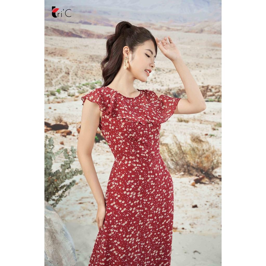 ✨Đầm hoa nhí, bèo ngực, bèo gấu Tri'C Luxury A23121 Đỏ đô