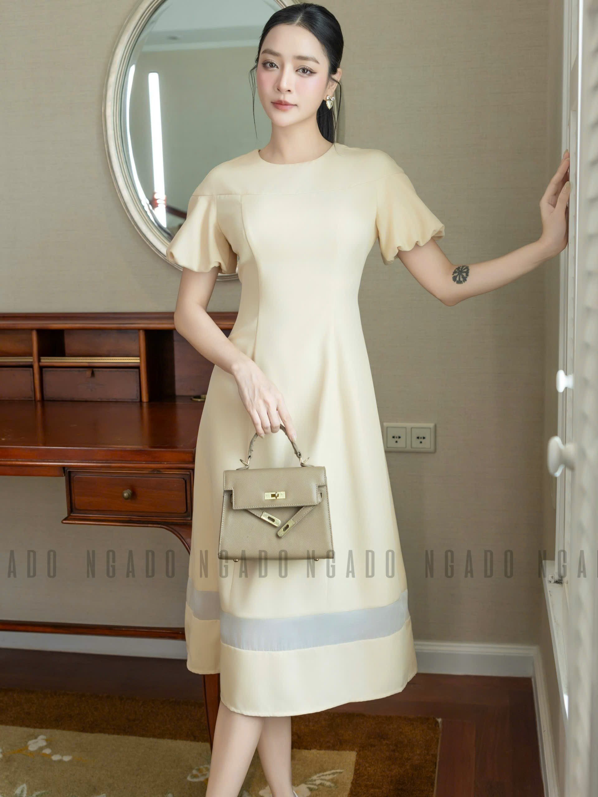 ✨Đầm kem dài cổ tròn NGADO , đầm dài , đầm cổ tròn