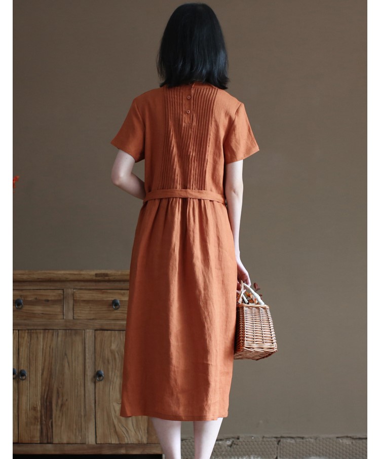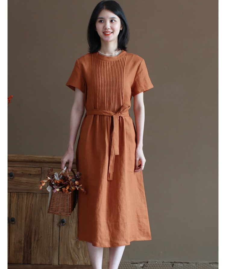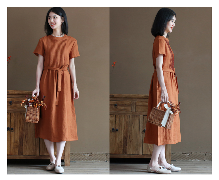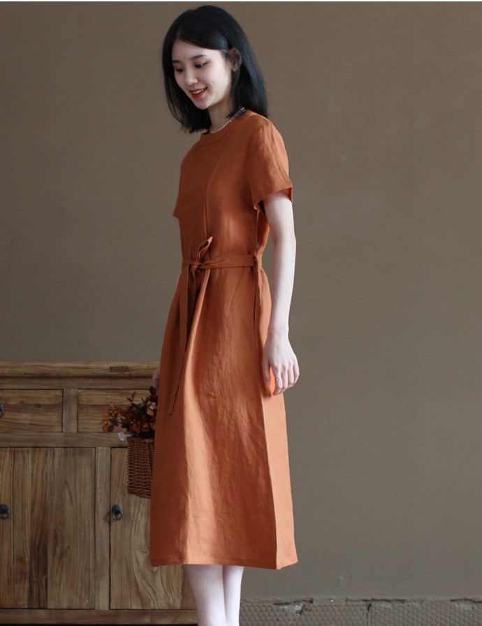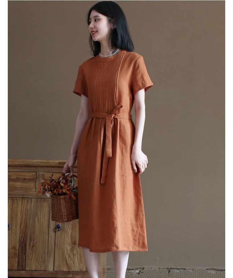 ✨Đầm linen suông thiết kế , Đầm váy nữ dáng dài cổ tròn, ngắn tay eo có dây thắt Haint Boutique Da191