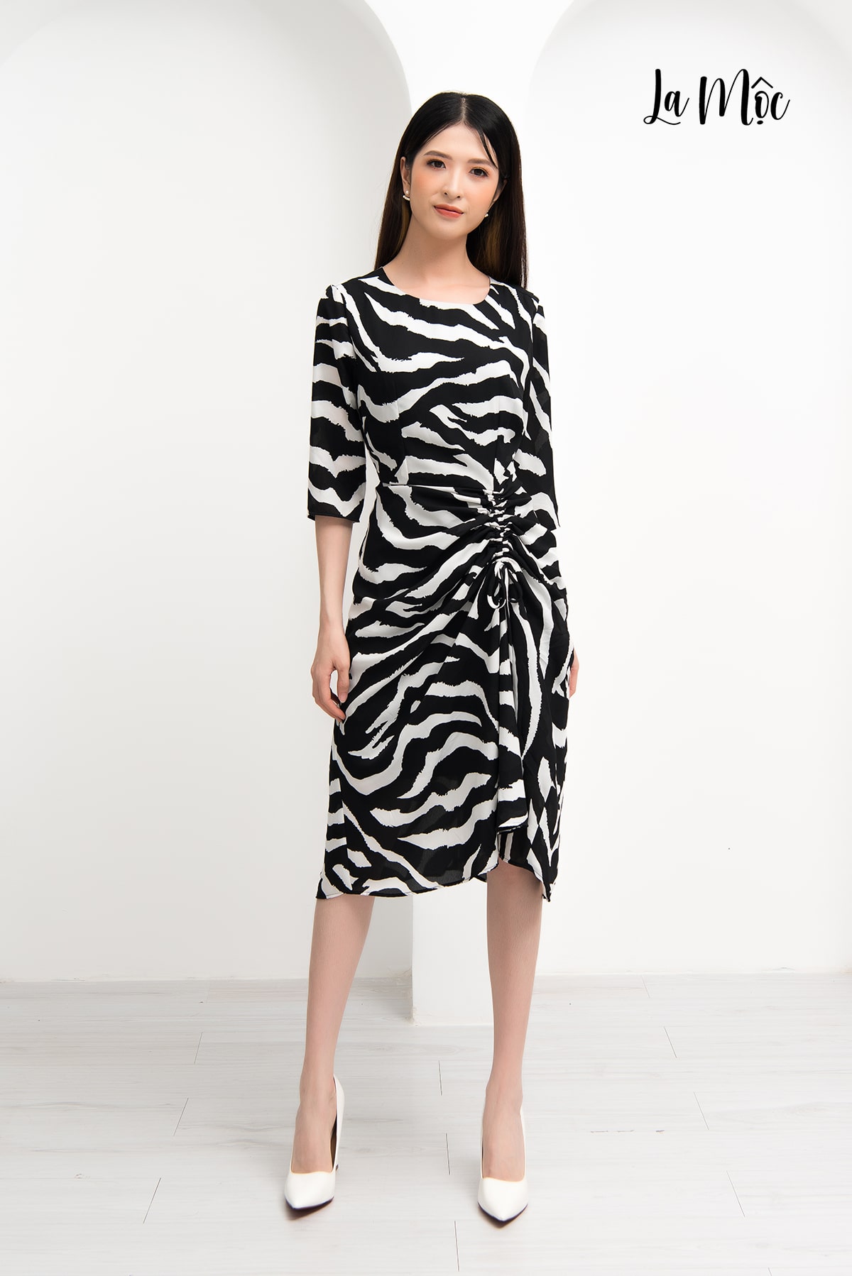 - Thông tin sản phẩm Mã sản phẩm: LM72154A Chất liệu: Lụa Korea Xuất xứ: Việt Nam Đặc điểm: Hoạ tiết beo, cổ thuyền, tay lửng, váy rút dây.