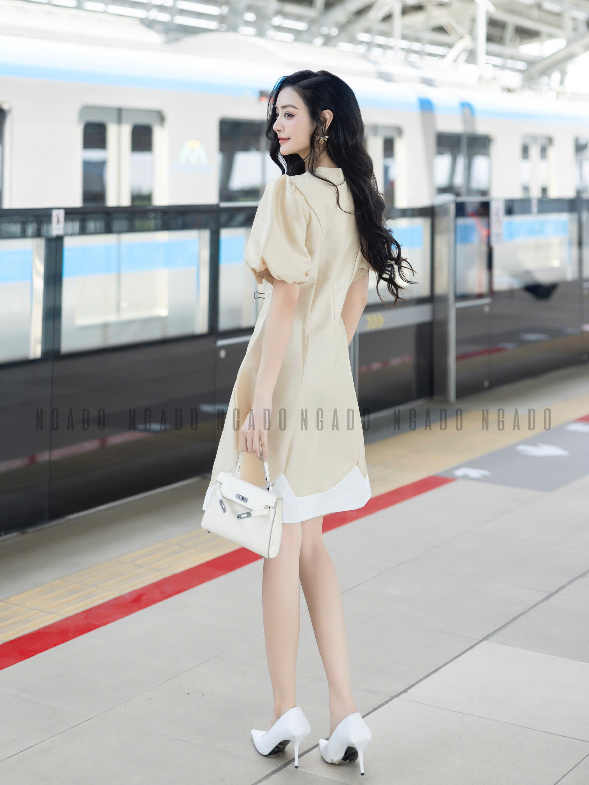 ✨Đầm nude tay phồng NGADO , đầm dự tiệc , đầm thiết kế