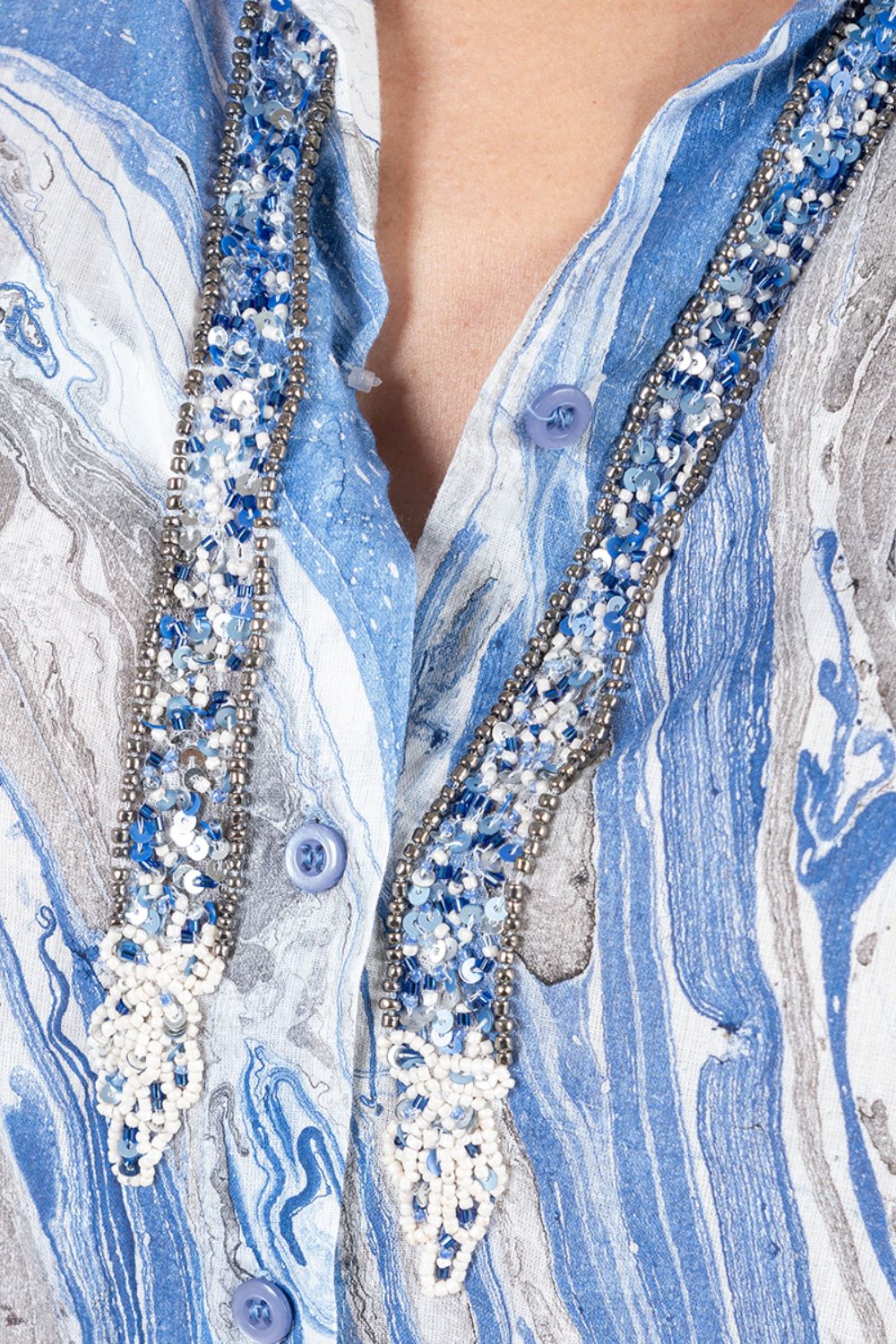 Đầm Sơ Mi Cotton, chất liệu cotton mềm mại, mỏng nhẹ. Phần trước ngực đính hạt tạo hình lá độc đáo. Mặc phối với quần short hoặc legging bên trong. Phom suông. Dài đầm 100cm