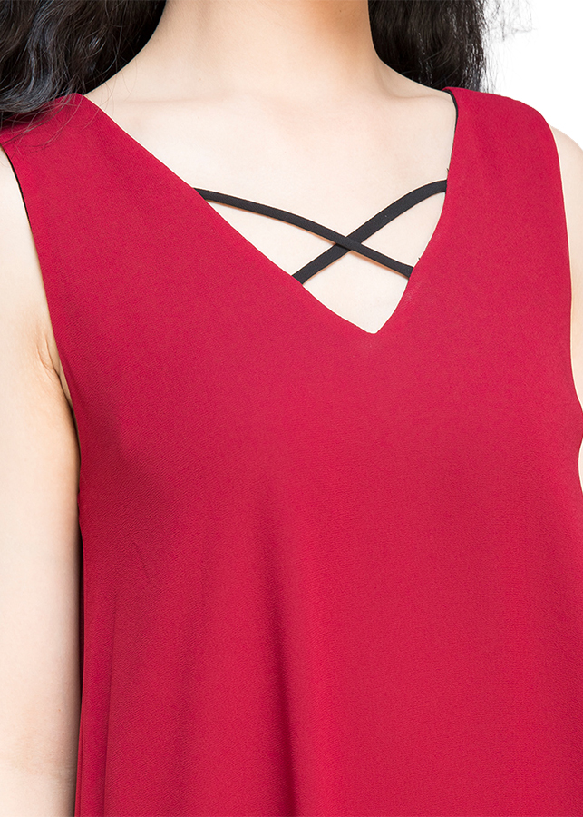 Đầm Suông Đỏ Đô Phối Ren Cao Cấp DL341