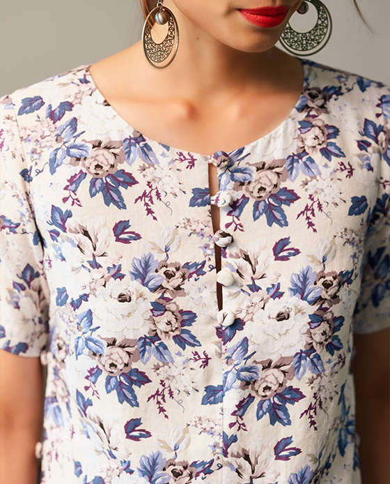 Cổ tròn, đánh giọt nước cài hàng nút bọc trước