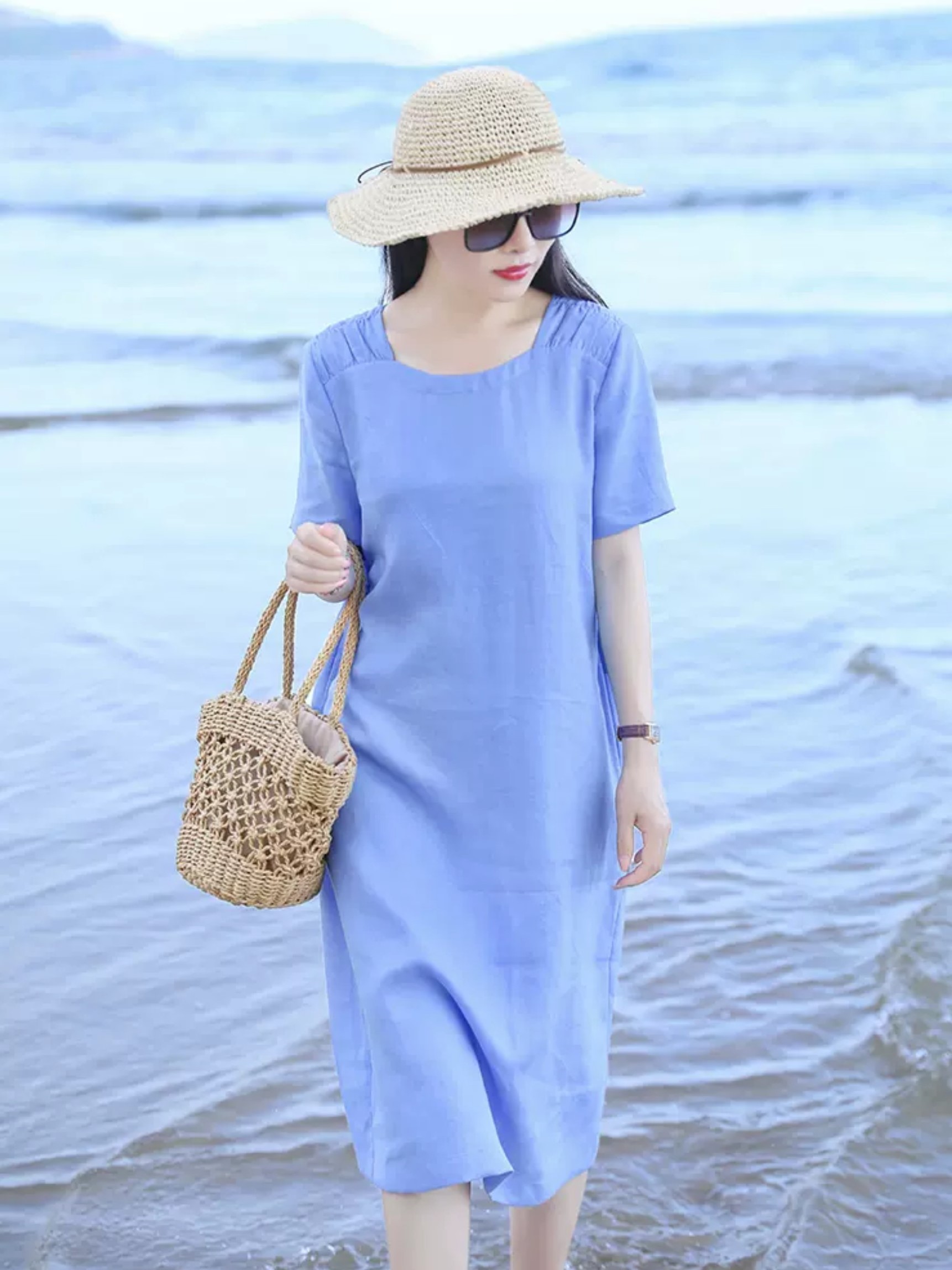 ღ THÔNG TIN SẢN PHẨM: Tên sản phẩm: Đầm xanh babydoll sát nách Màu sắc: Xanh biển Chất liệu: chất cát hàn Chi tiết sản phẩm: không lót, không túi