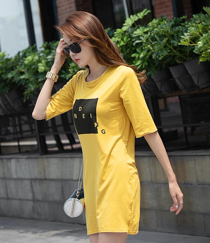 Mua tại Tiktok- Đầm thun suông xẻ tà in chữ 105 được thiết kế thanh nhã với kiểu dáng trẻ trung