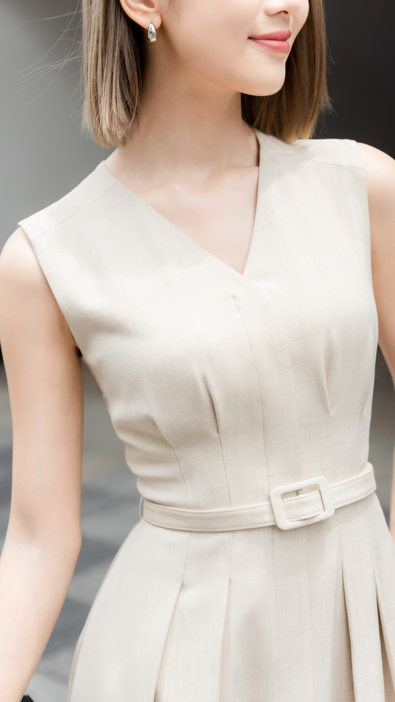 Mua tại Tiktok- Thông tin sản phầm Đầm sát nách xếp ly thân trước + thân sau cầu vai 2 lớp vải chính. Thiết kế đầm liền thân chiết eo, cổ V tinh tế giúp tổng thể cân đối và thanh thoát. Độ dài đầm mặc qua đầu gối cùng thân váy xòe nhẹ nhàng với đường xếp ly tạo sự bồng bềnh tự nhiên, thướt tha mỗi khi di chuyển.