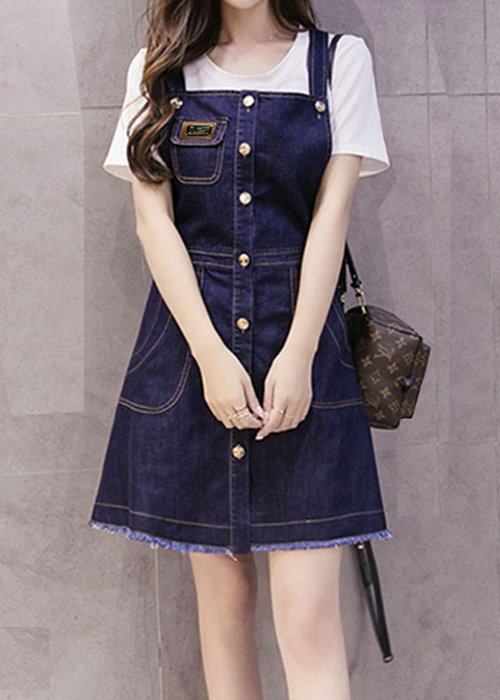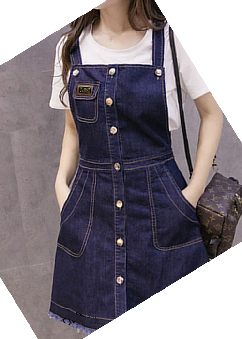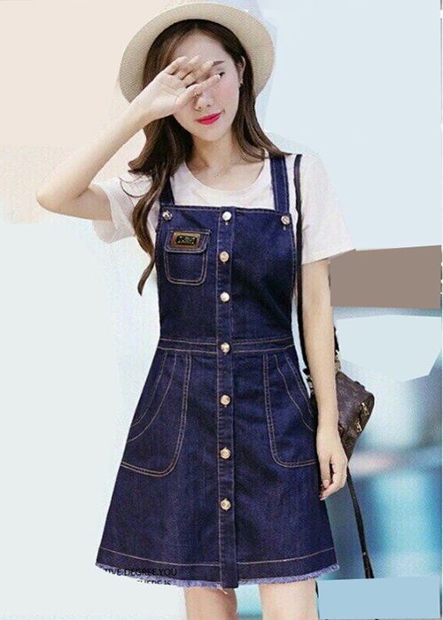 ✨Đầm Yếm Jean Nữ Thêu Logo Cài Nút Dọc Duyên Dáng