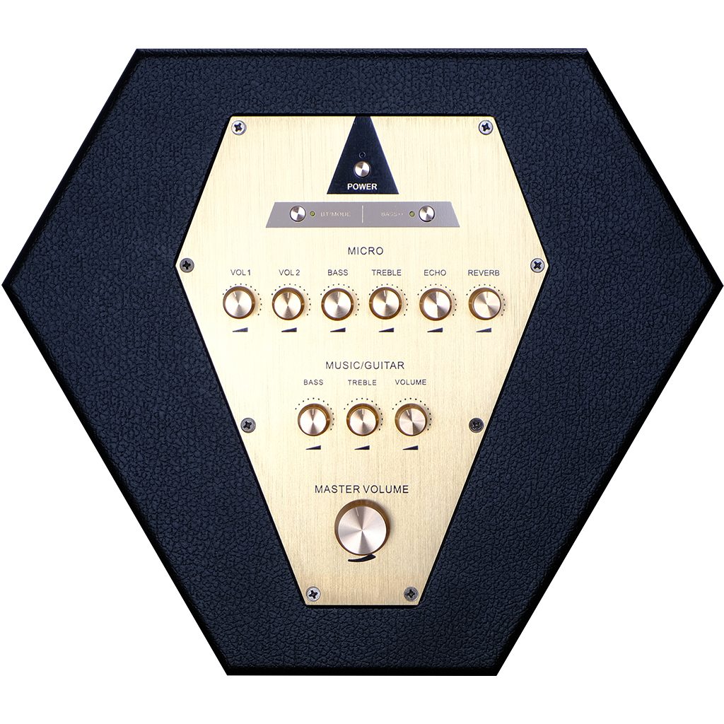 Mặt máy được thiết kế nút điều chỉnh riêng cho nhiều cụm âm thanh và chức năng riêng: Âm thanh bao gồm Micro, Music, Guitar, Master..., chức năng như chế độ Bluetooth, Optical, phát nhạc MP3,.. [BT/MOBE], chế độ Boost Bass [BASS++]
