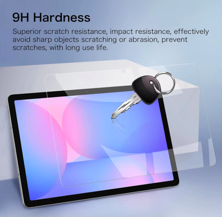 Miếng dán kính cường lực, chống vỡ màn hình cho Galaxy Tab S10 FE. Bảo vệ màn hình một cách hoàn hảo với độ cứng lên tới 9H (gấp 20 lần tấm dán film sử